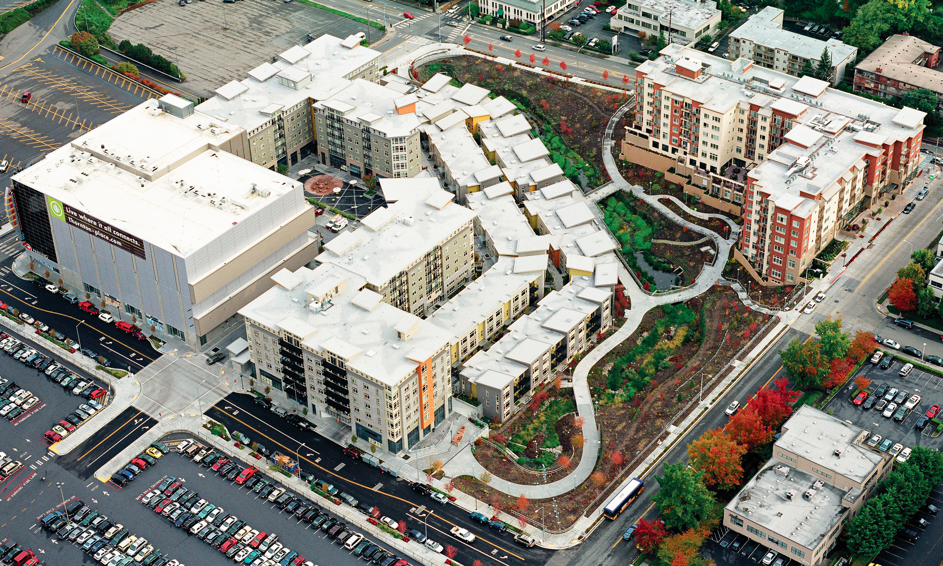 Thornton Place is a vibrant, 6-acre mixed-use community that brings housing, retail, public space, and restored natural habitats together in the heart of North Seattle. This 727,000 SF development includes eight residential buildings—two six-story apartment buildings with 279 homes built over a 900-stall parking garage, and six three-story buildings offering 109 condominiums. More than 50,000 SF of neighborhood-serving retail and dining space activates the street level, creating a lively and welcoming destination.