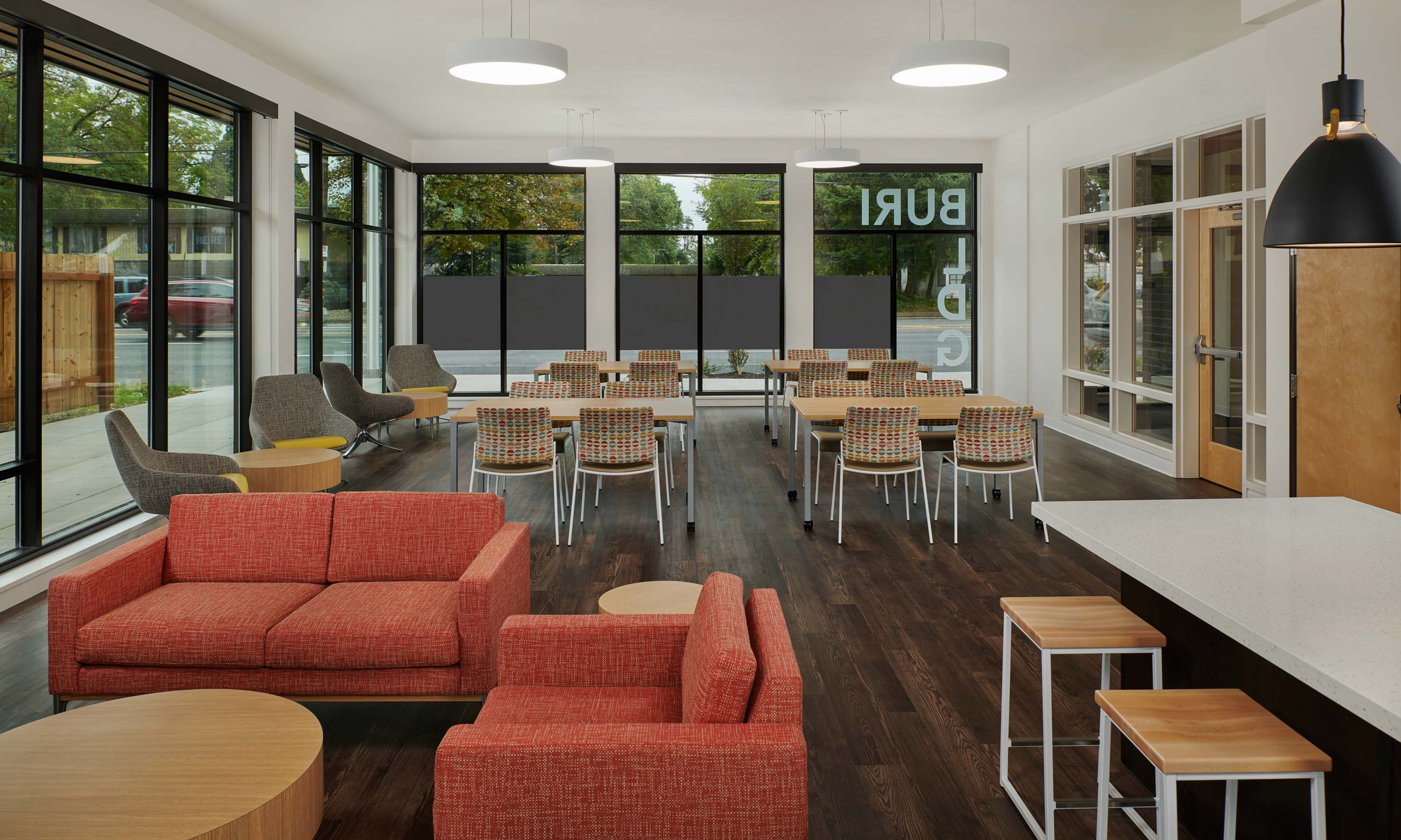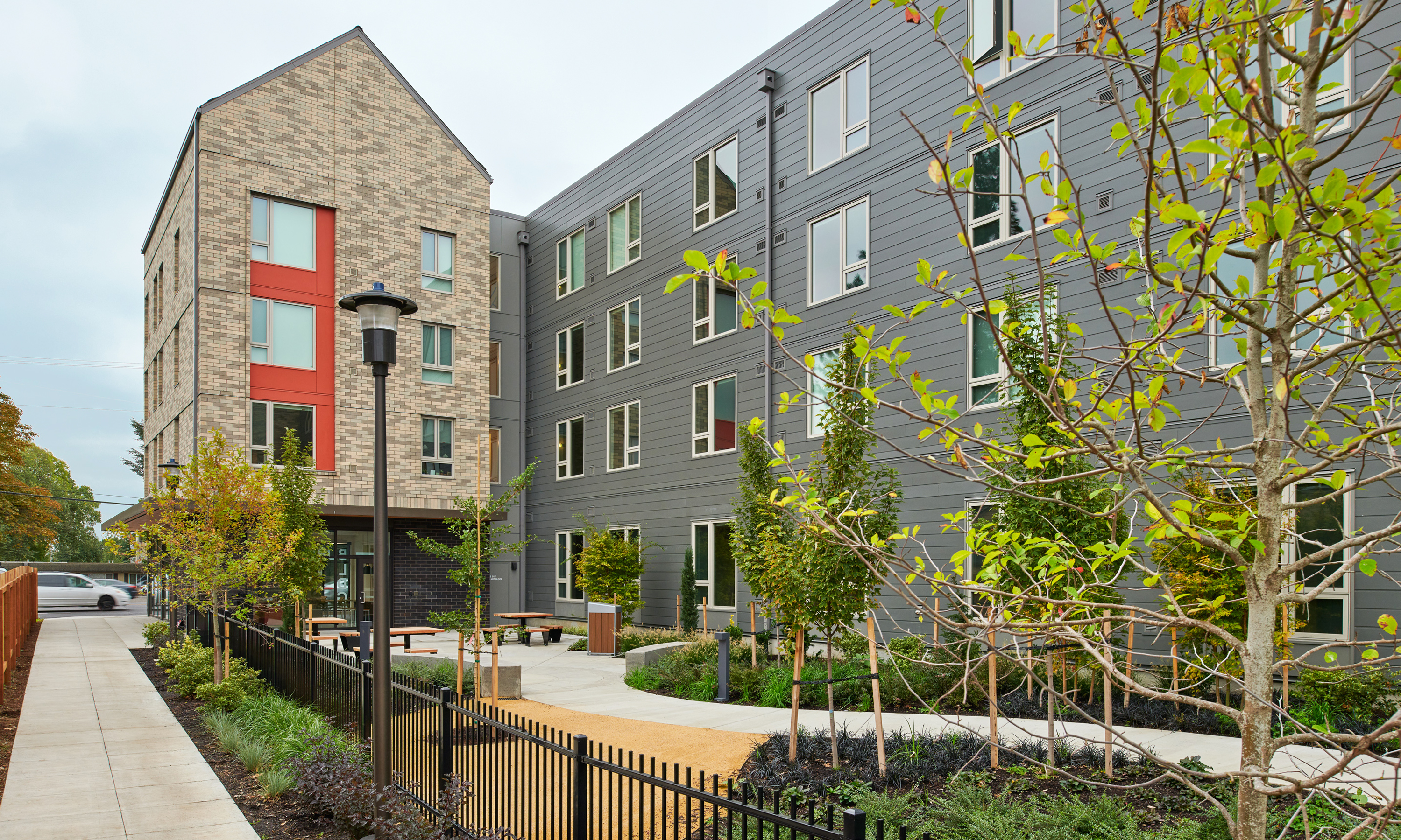 Northwest Housing Alternatives’ Buri Building is a transit-oriented development located in Portland’s Gateway neighborhood. The 91,000-square-foot, 159-unit structure consists of 102 studios, 51 one-bedroom, and six two-bedroom units of workforce housing. Also included are resident services office space, a courtyard, community room, bike parking, and common laundry and utility spaces. The Buri Building is a designated Regional Center in Metro’s 2040 Growth Concept Plan and is the first project in the area that requires a pedestrian path to improve circulation in the large blocks of the Gateway district.