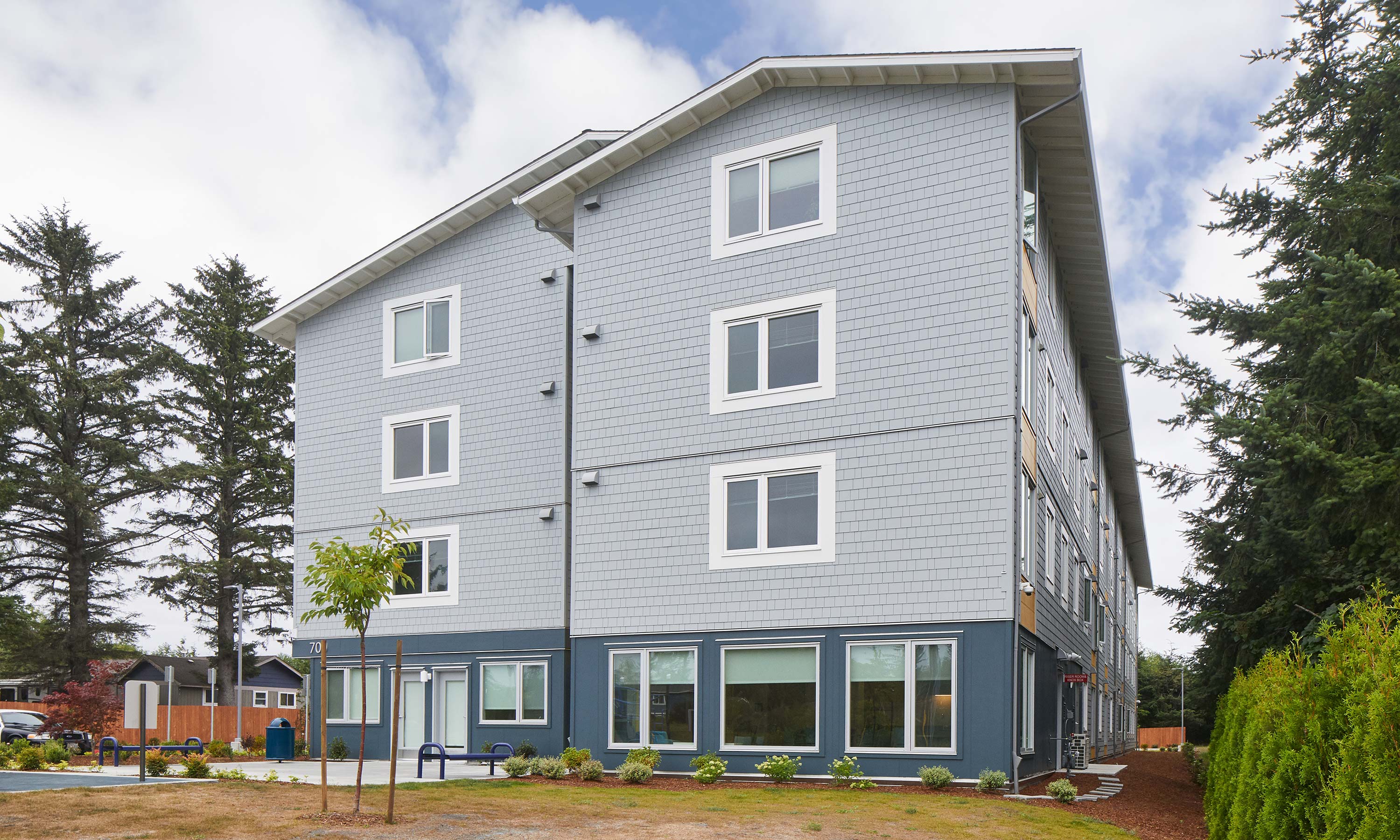 Trillium House in Warrenton, Oregon is four-story, 42-unit housing project built in Chelsea Gardens, the city’s newest development area and one of the last developable properties along Highway 101, to bolster the lack of affordable housing for Clatsop County’s working families. Also included is a community garden, outdoor play area and gathering spaces, both inside and out, to promote the connection of health and housing, with health services, healthy food through the community garden and other connections.