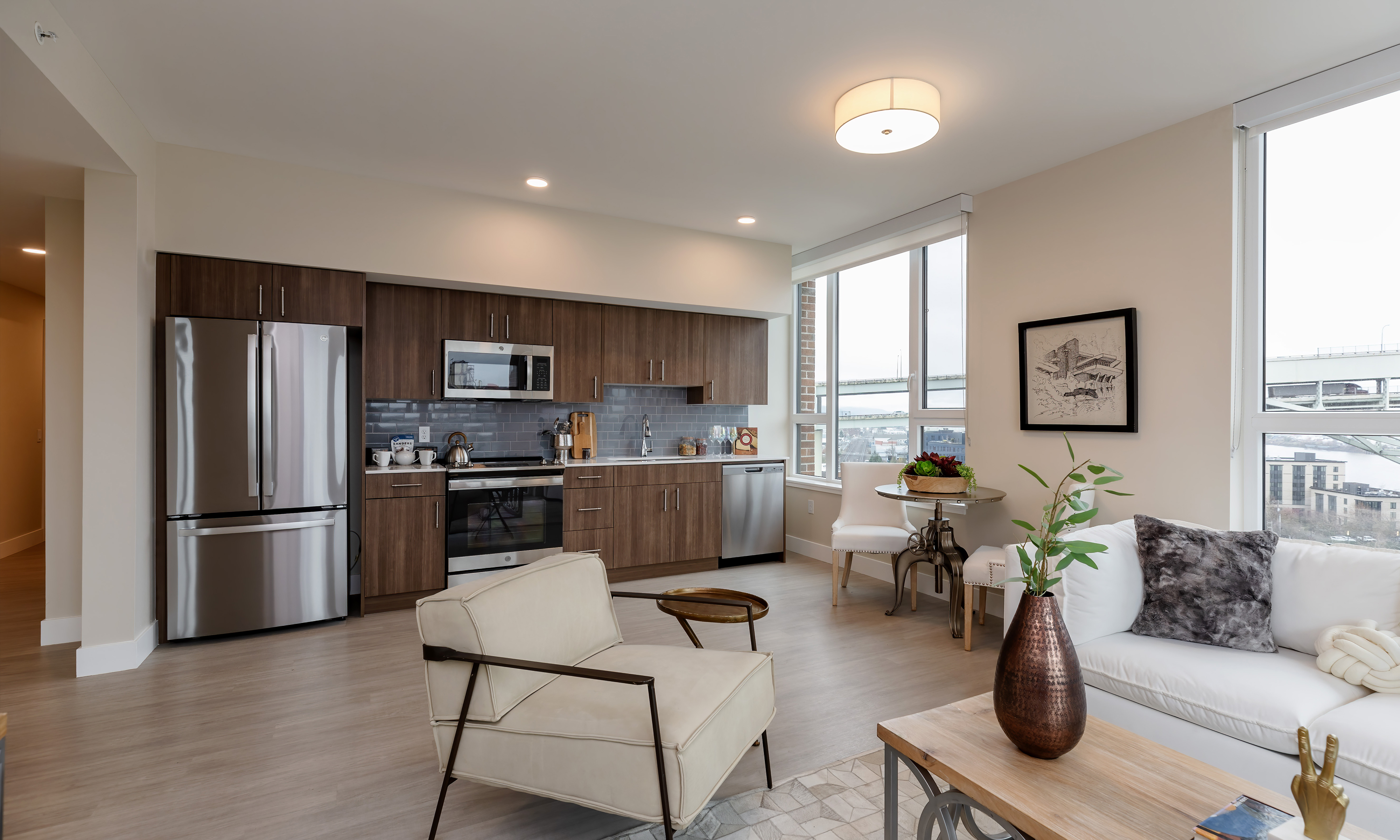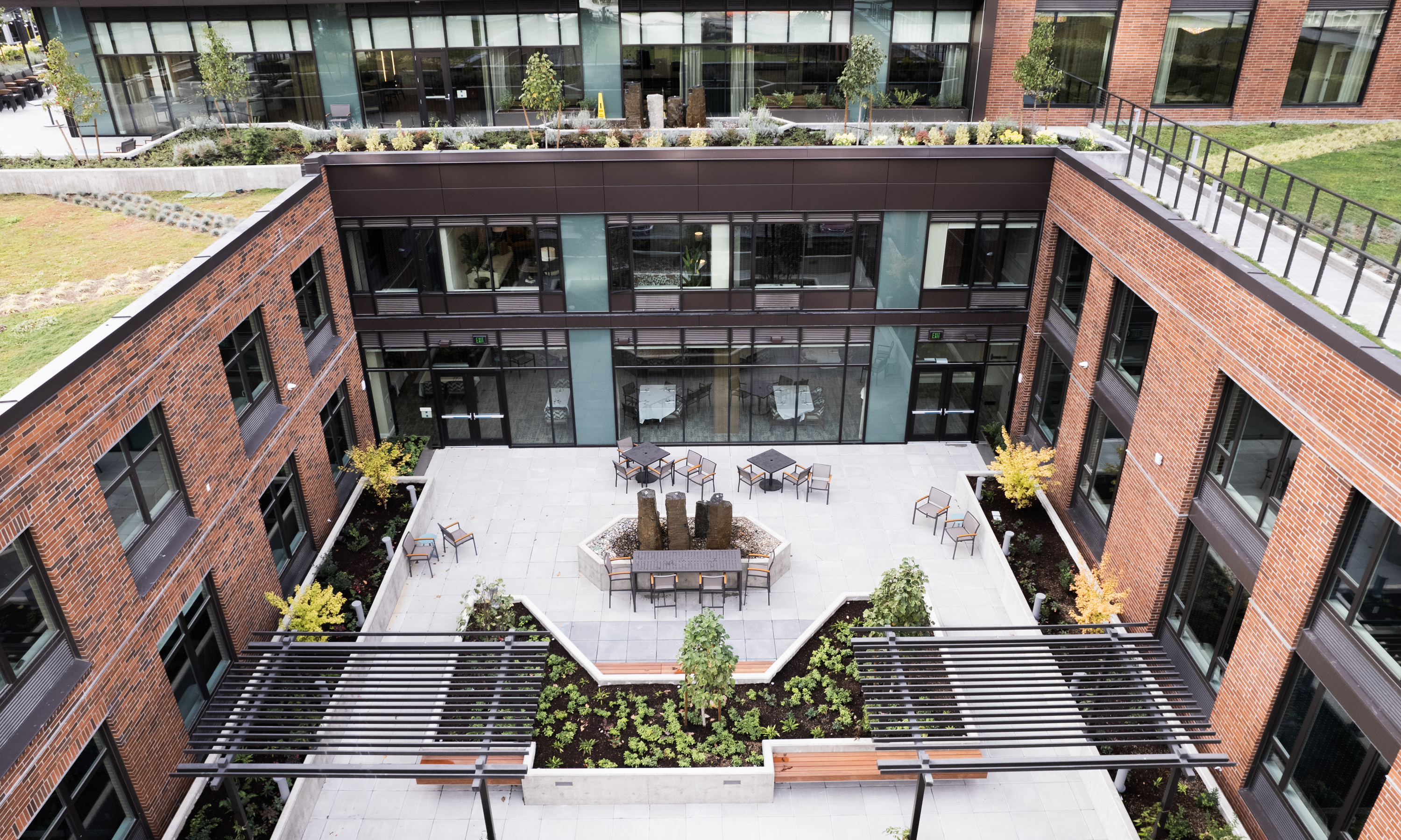 The Watermark at the Pearl offers residents striking views of the city and modern amenities. The 16-story, 328,677 SF building features 237 units within walking distance of Portland’s cultural hubs, restaurants, boutiques, art galleries, parks and museums. With 28,000 SF of indoor amenity space, The Watermark at the Pearl offers residents access to a state-of-the-art wellness center, multiple dining areas, a salon, activity areas, family gathering spaces, and more. Terraced courtyards and rooftop spaces provide outdoor dining opportunities and green space. There is also outdoor living rooms, water features, a chef’s herb garden, and a covered pet area. Weather-protected pick-up and drop-off, valet parking, as well as parking for 149 vehicles, housekeeping and transportation are also included with the project.
