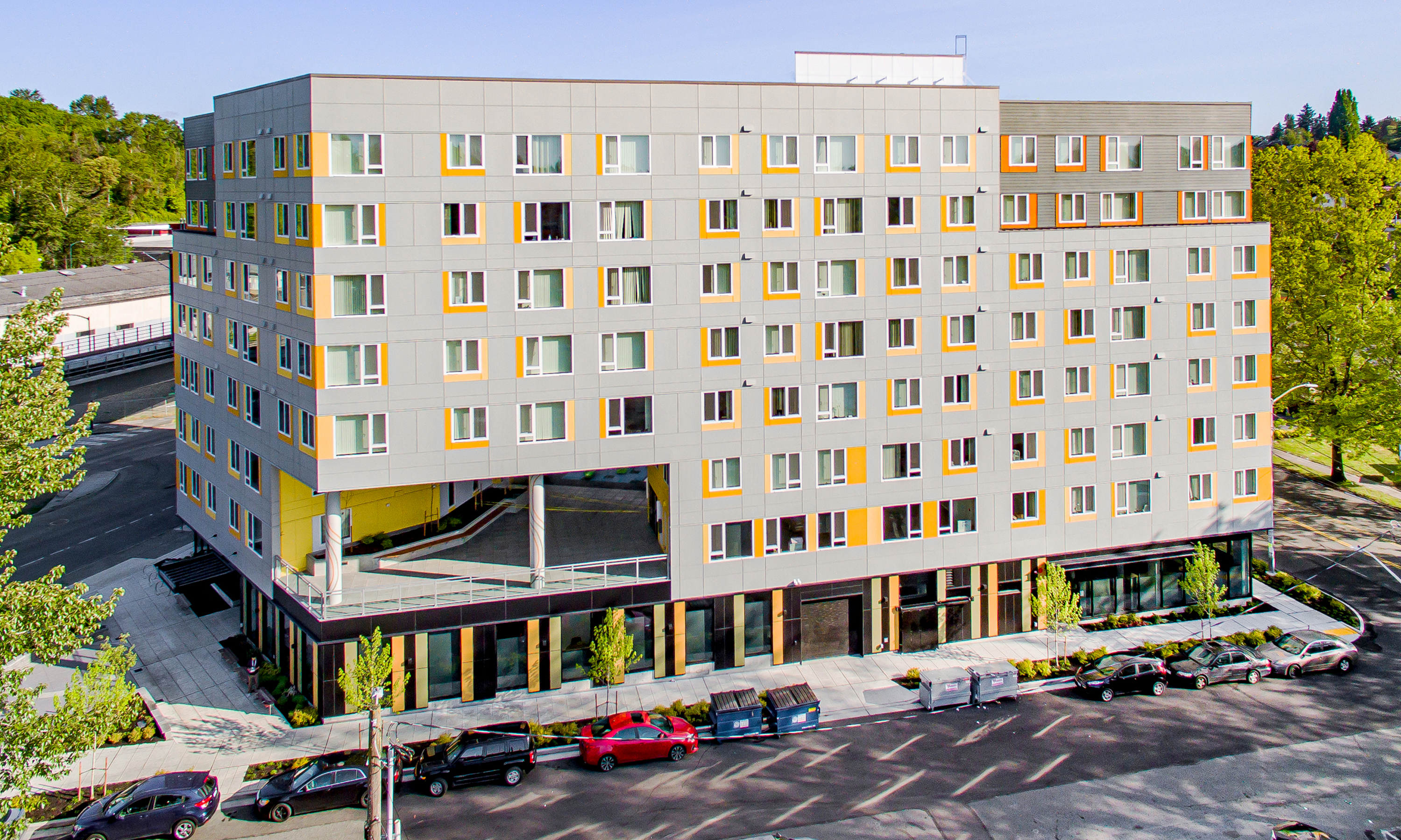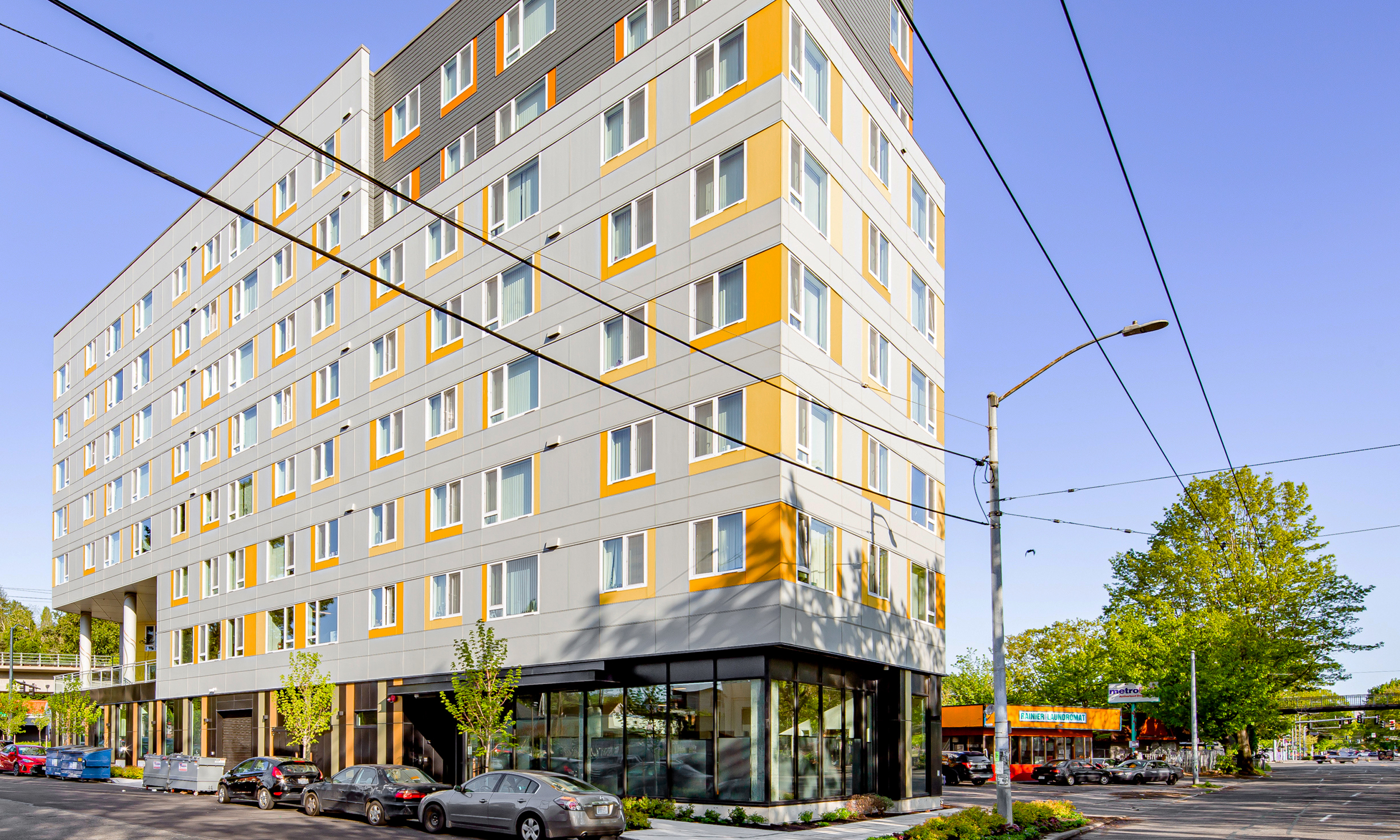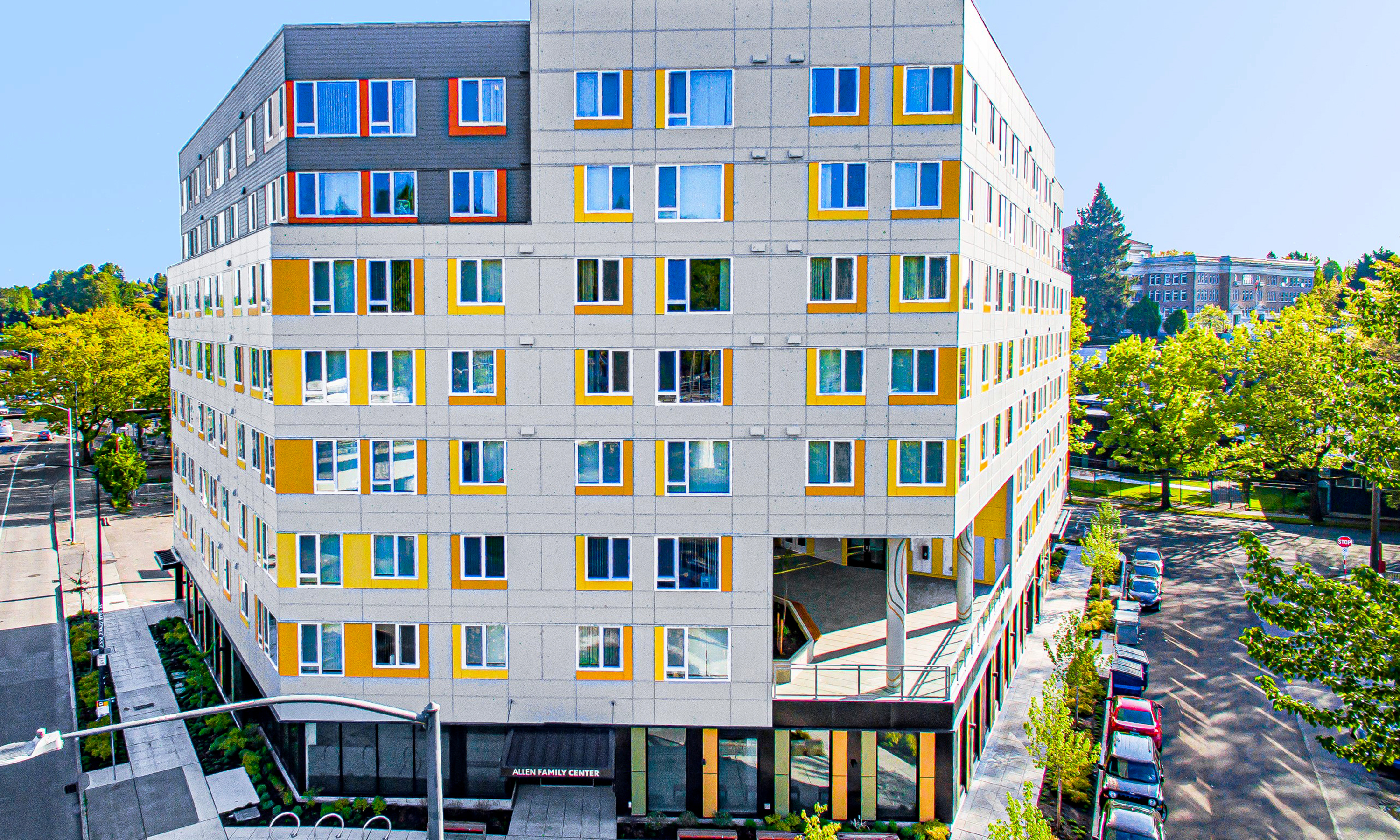 The 108,000-square-foot project contains 95 affordable one and two-bedroom homes for families experiencing homelessness or with low incomes. At ground level, 8,200 square feet of space is dedicated to Allen Community Center, a Family Resource Center serving Seattle-area families with children experiencing or at risk of homelessness.