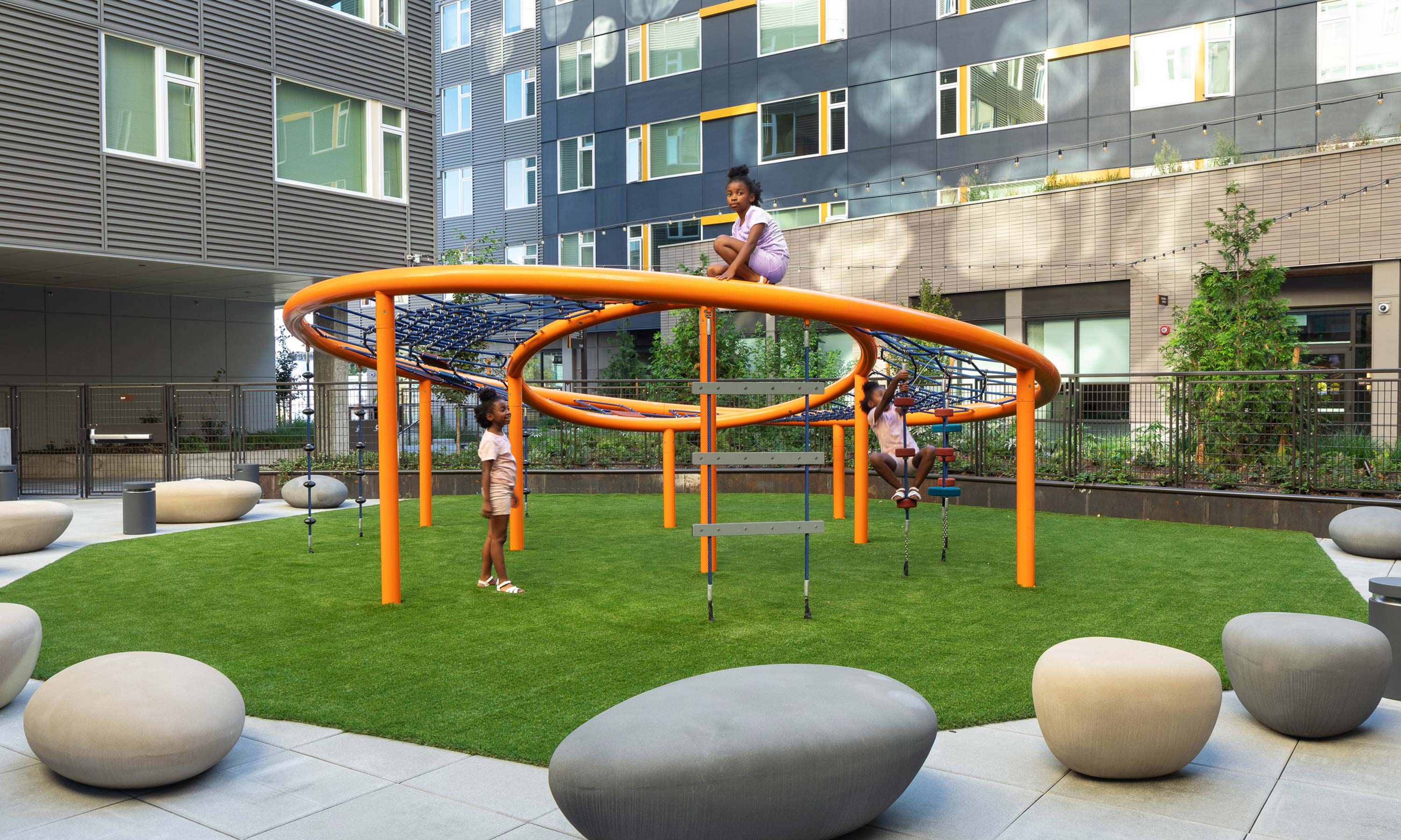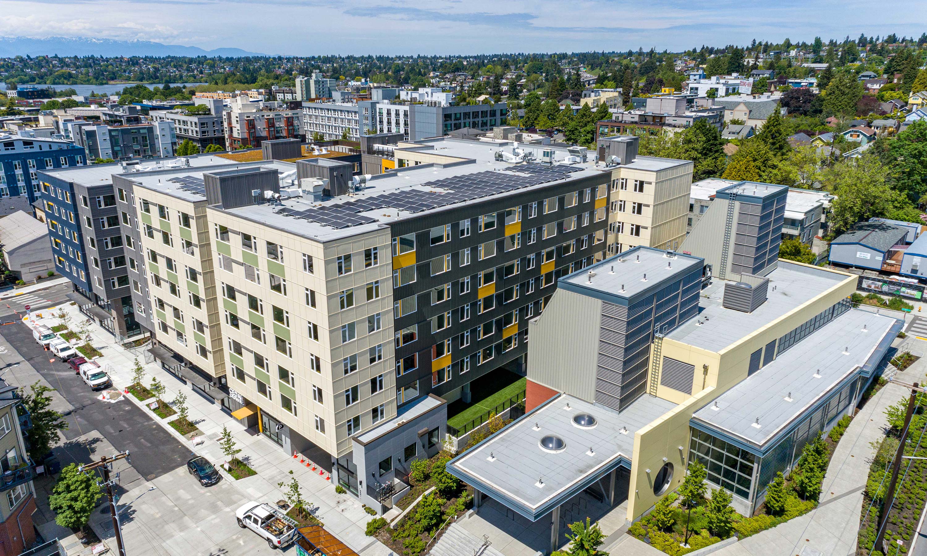 Cedar Crossing is an affordable, multifamily, mixed-use community adjacent to Roosevelt Light Rail Station in north Seattle. Built of Types III and V wood frame over Type I concrete, the project’s 292,000 square feet include two buildings—seven and eight stories, respectively. The project comprises 254 residential units, 15,000 square feet for retail, below-grade parking, indoor and outdoor community spaces, an early learning facility, and a public right-of-way through the site. The resulting large-scale project is a high-quality, family-focused building with easy access to public transit.